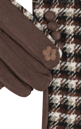 Luella Houndstooth Patterned Gloves Brown/Gold Metallic Thread