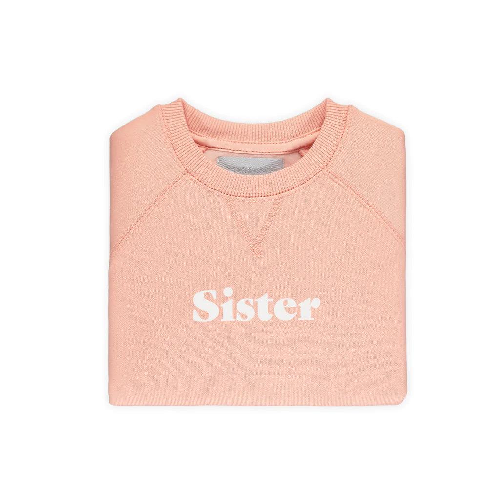 A relaxed / baggy style Coral Pink sweatshirt with a white 'SISTER' print - designed to be a loose fit, size down for a less over sized look.