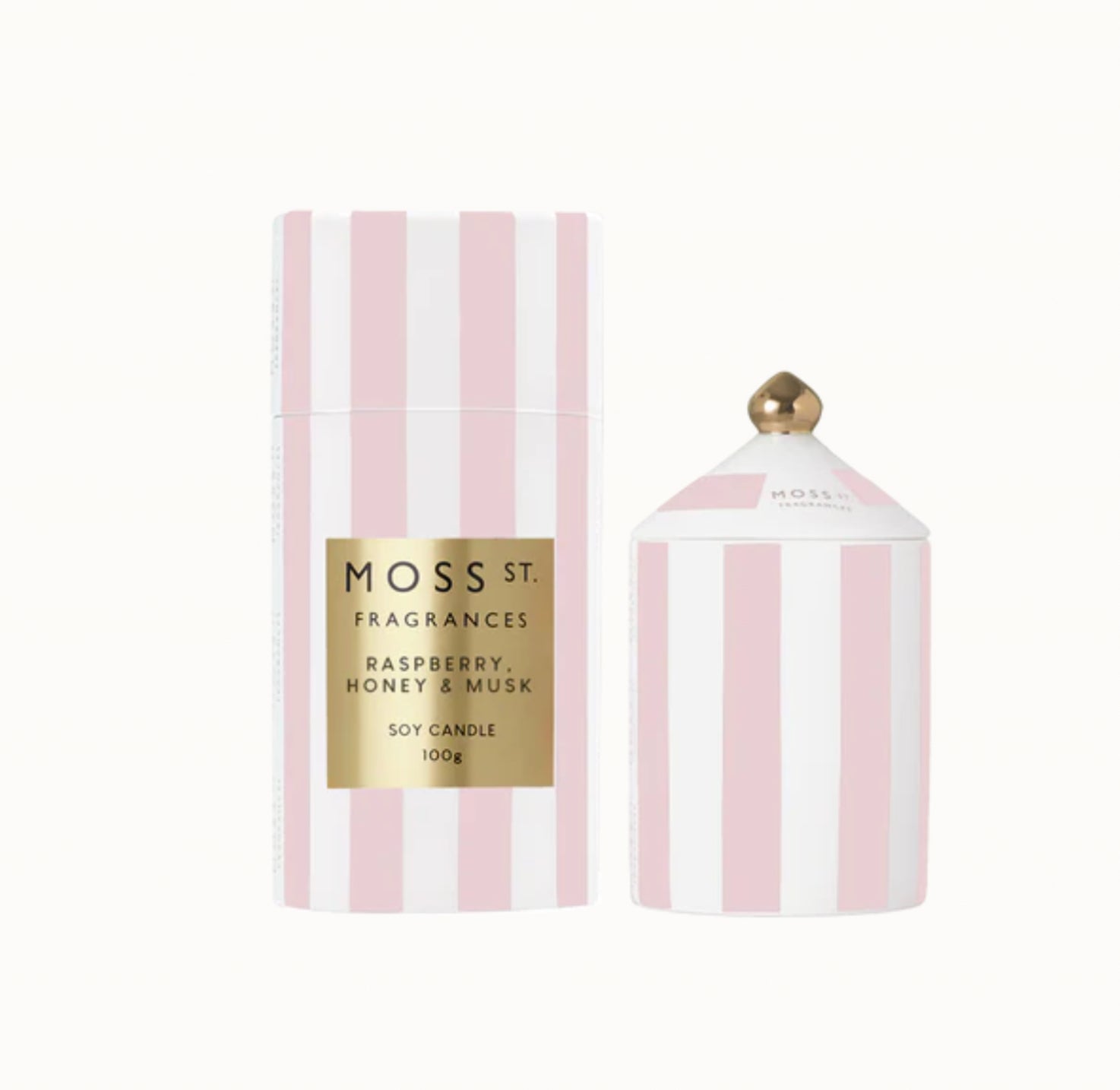 A hand-poured, custom-designed ceramic candle that fills any space with the light floral scent of Raspberry, Honey & Musk. Featuring bold stripes and luxe foiling, these ceramics are designed to be re-used long after the candle is finished.