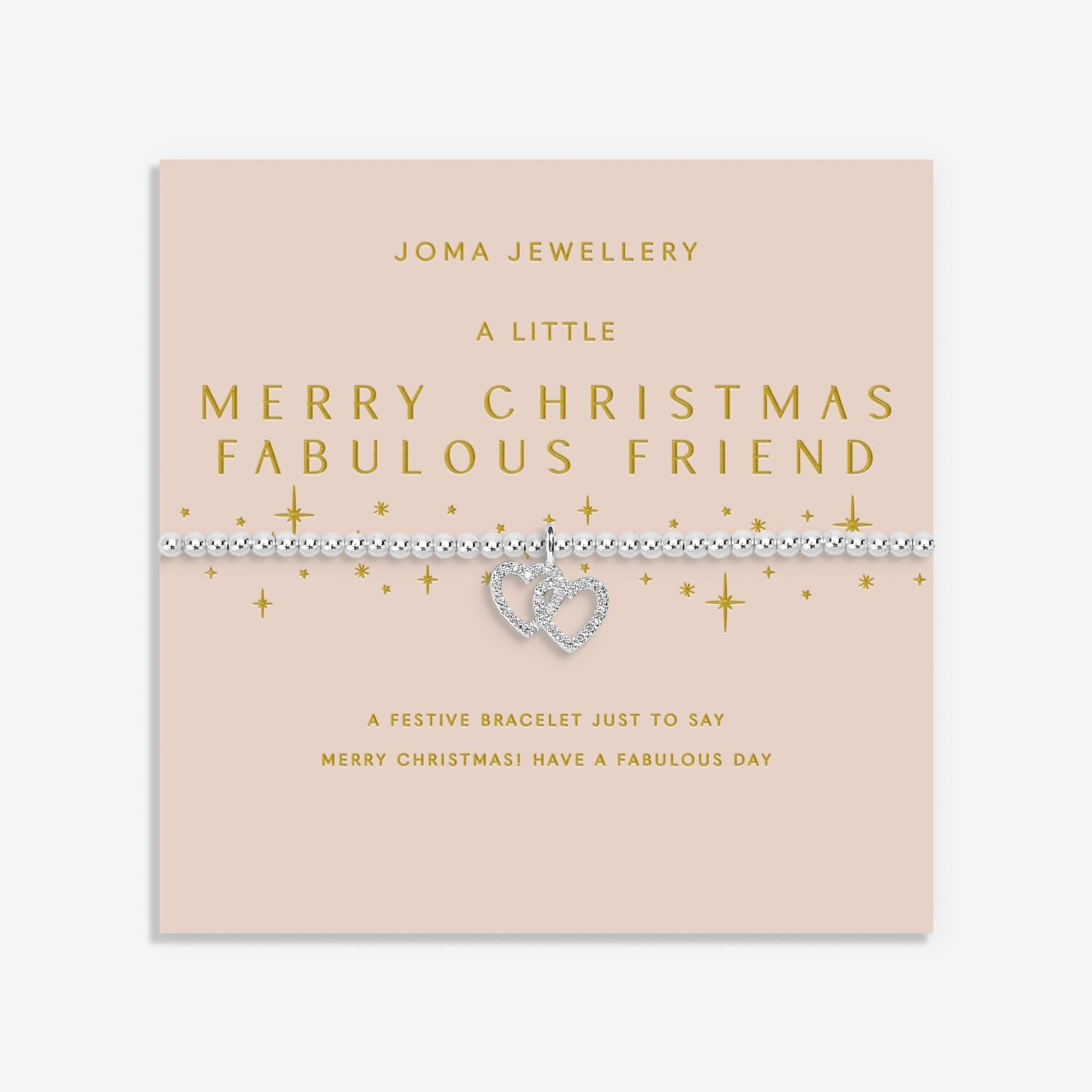 Capture every magical moment with your loved ones this festive season with our twinkling Christmas A Little Bracelets! Made to last and be loved for a lifetime, our Christmas A Little 'Merry Christmas Fabulous Friend' Bracelet In Silver Plating is threaded with our classic silver-plated beads and decorated with a pretty interlinked heart charm to represent the love you share. Wrapped around a shimmering starburst-print card and framed by a sweet poem, it's sure to make a wonderful stocking filler or under-the-tree treat.