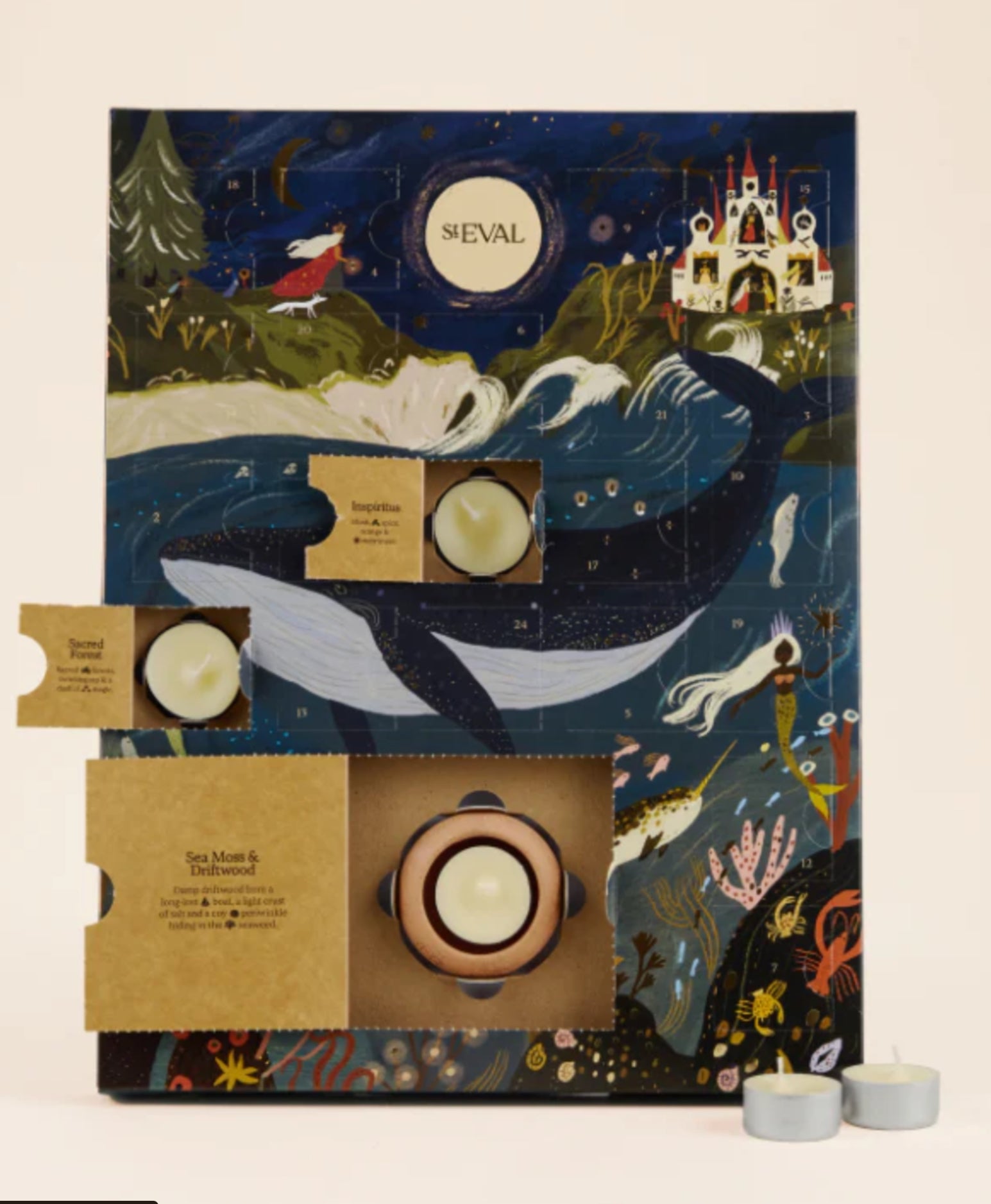 Celebrate the countdown to Christmas with our limited-edition Tealight Advent Calendar, reimagined with enchanting illustrations of ocean myths and winter nights. Behind every numbered door, discover a selection of 24 scented tealights and a gold-dusted tealight holder.