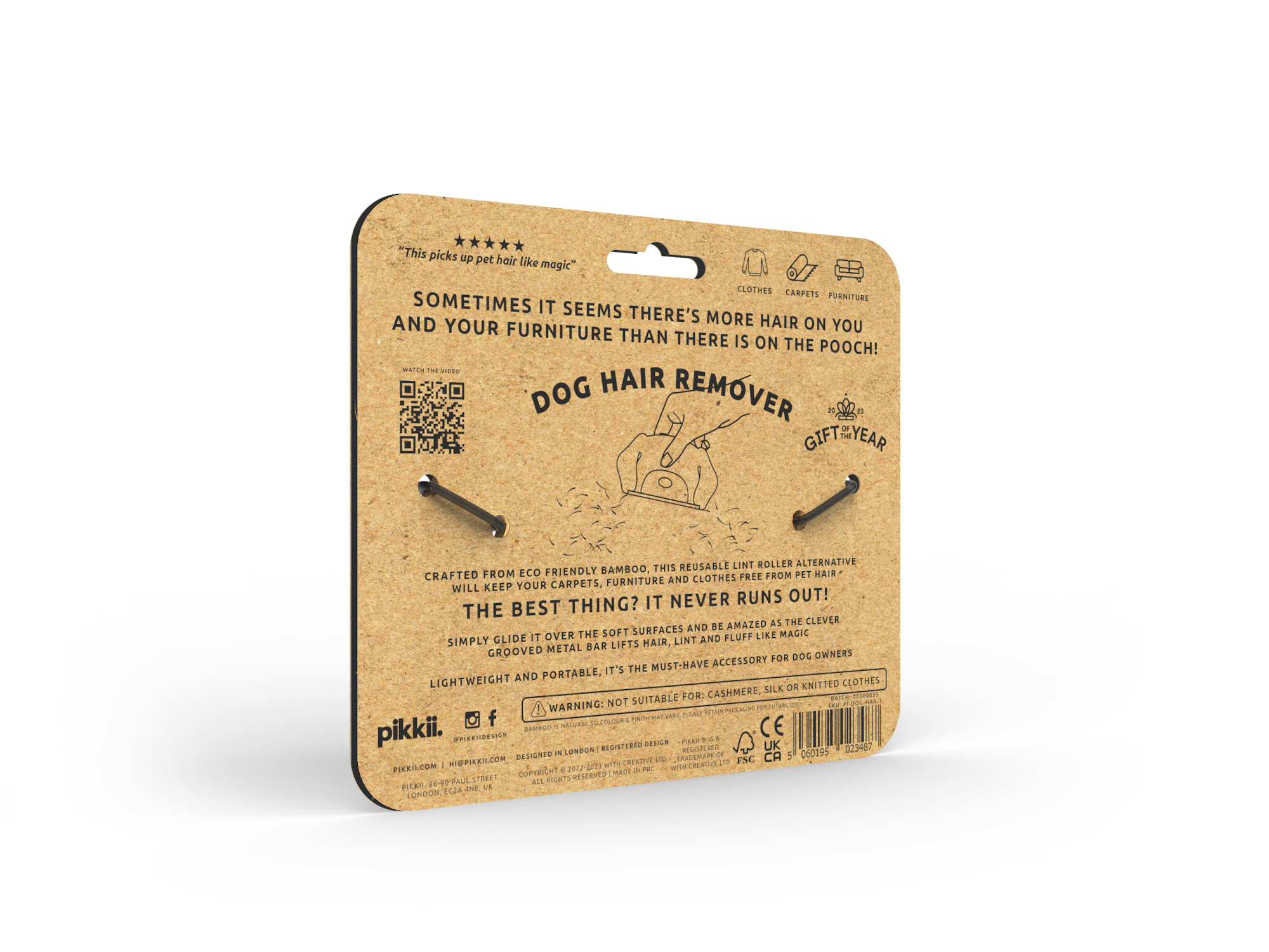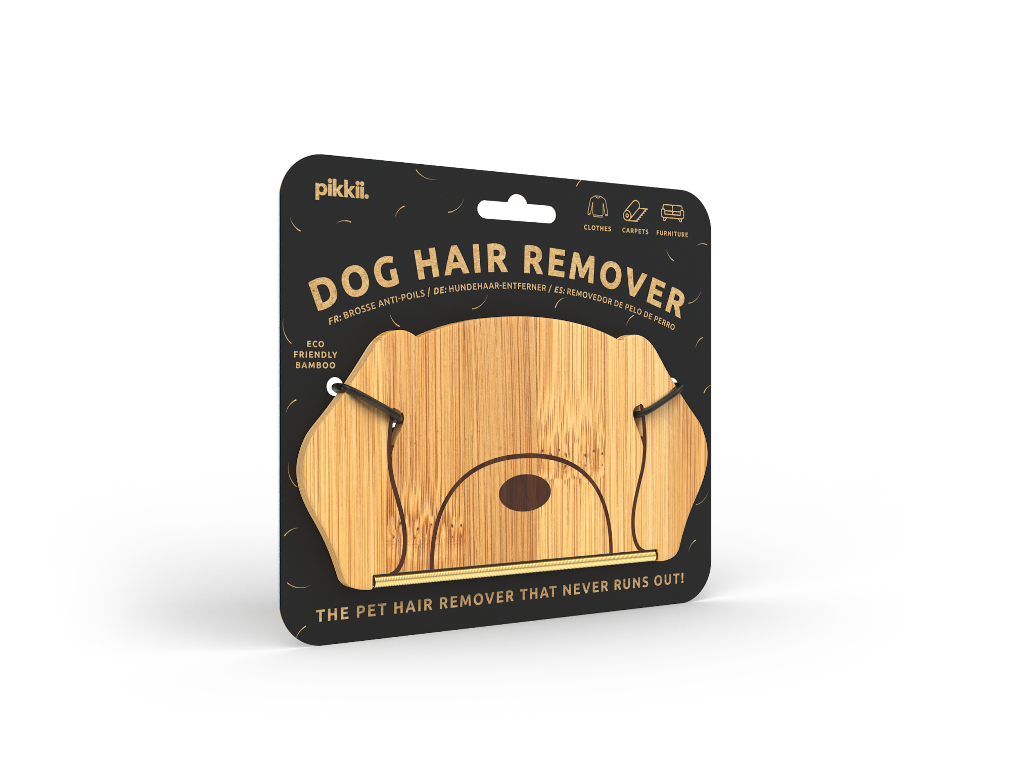 The Pikkii Dog Hair Remover, featuring a sleek bamboo design, is a must-have for pet owners. Its durable and eco-friendly construction provides an endlessly reusable solution to pet hair woes. Ideal for sprucing up clothes, furniture, and carpets, keeping your home fur-free and fresh.
