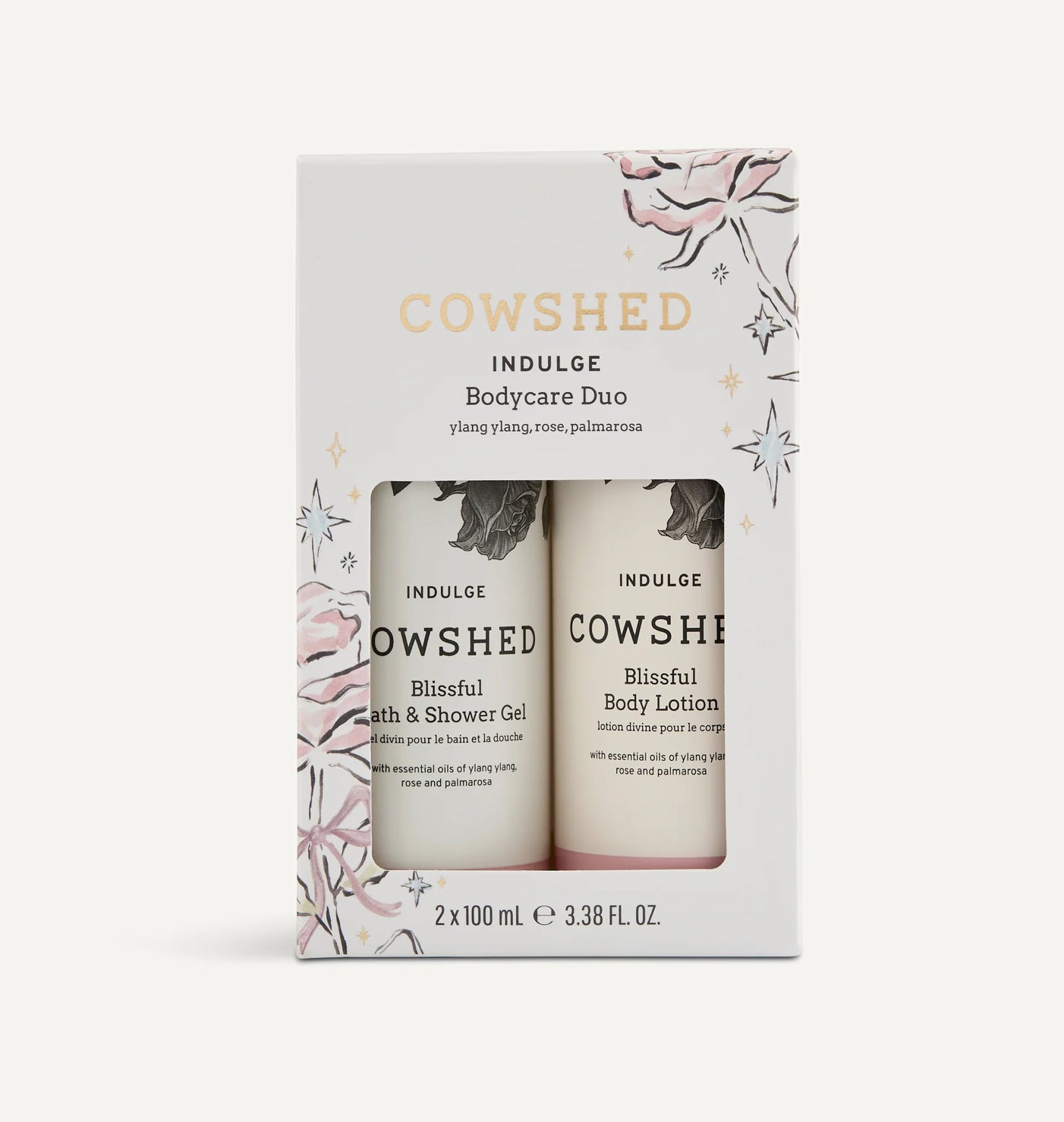 Wrap yourself, or someone you love in the indulgent aromas of Rose and Palmarosa essential oils while soothing Ylang Ylang helps restore balance. Create a blissful Cowshed spa moment at home with this beautiful Bath & Shower Gel and Body Lotion duo.