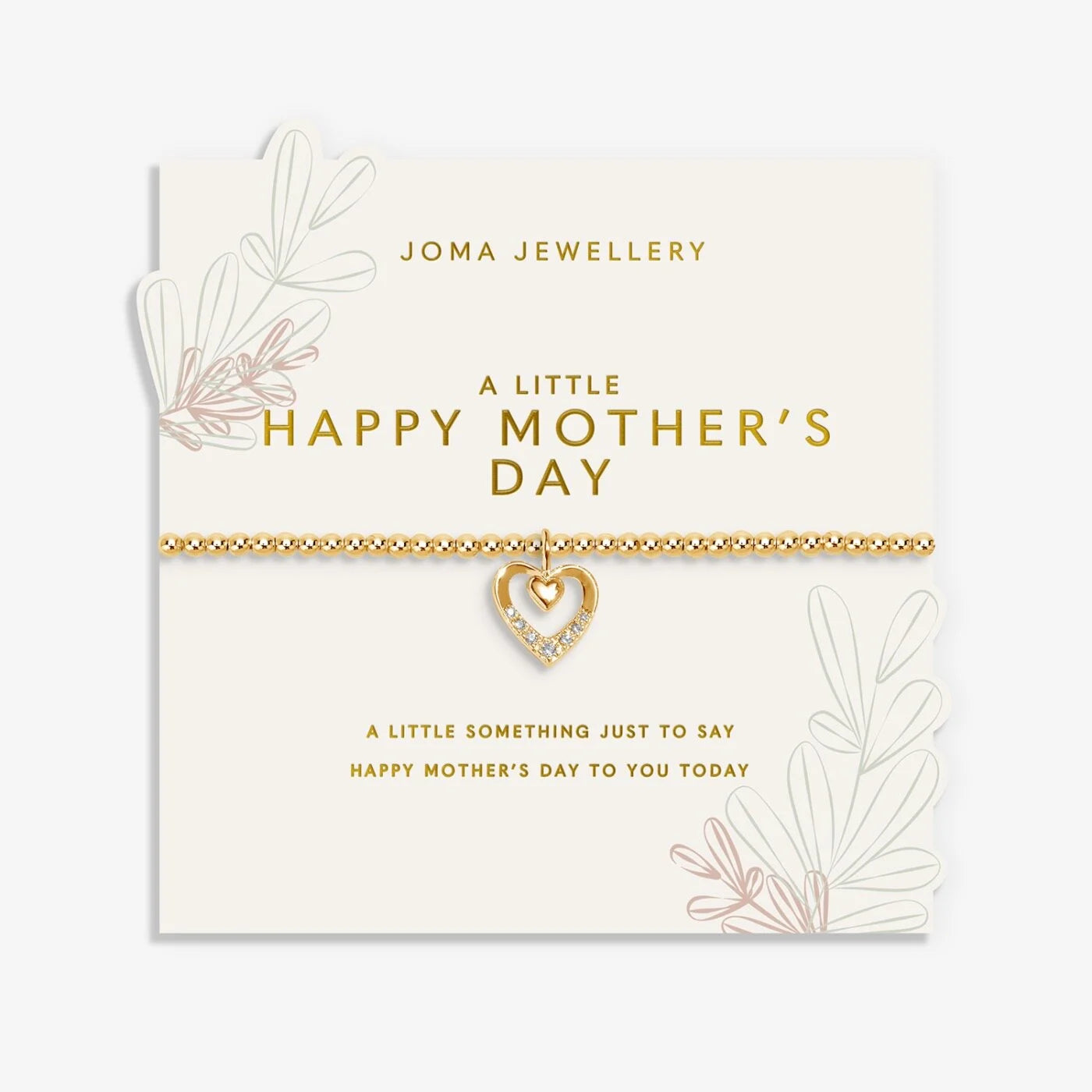 Celebrate the women who are there through every cheer, every tear, and every chapter with one of our beautifully heartfelt Mother's Day A Littles. This collection has been thoughtfully designed for every mum and mother figure, sitting pretty on a gorgeous cut-out floral presentation card in a palette of sage green, blush pink, and buttercream. The Mother's Day A Little 'Happy Mother's Day' Bracelet in Gold Plating is threaded with gold-plated beads and crowned with a pavé double heart charm, representing a love that blooms all year round. A gift as special as she is, she's sure to treasure it this Mother's Day and every one to come.