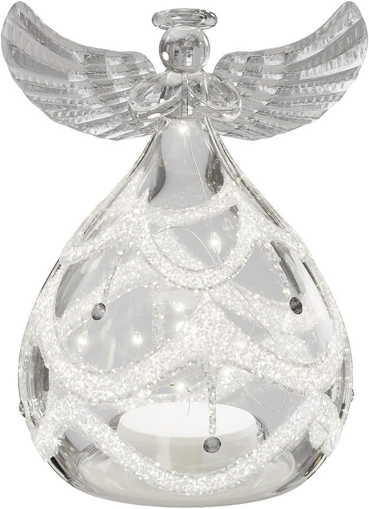 • Elegant Glass Angel Ornament – Made from clear glass with delicate shaping and internal LED lights