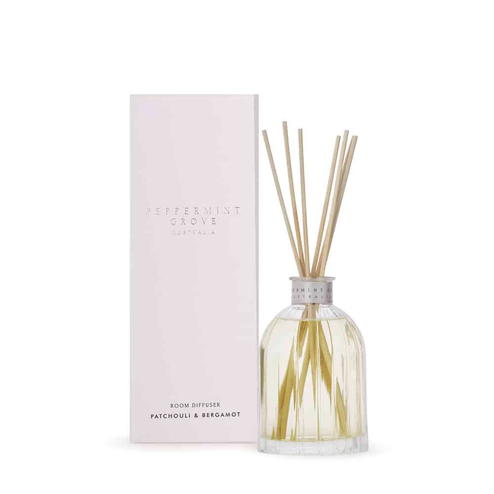 Top notes are bergamot and mandarin orange; middle notes are gardenia, jasmine and vetiver; base note is patchouli.