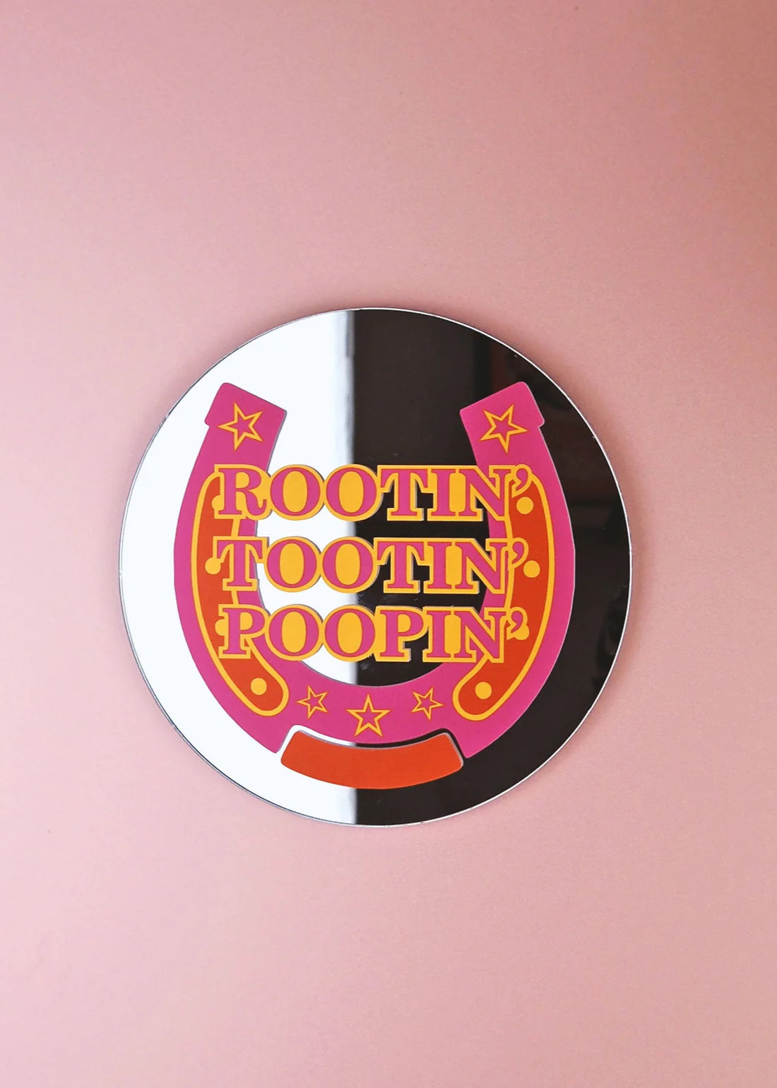 Giddy up and get ready to saddle up with the Rootin' Tootin' Poopin' Mini Mirror! Perfect for our cowgirl friends who need to take care of business in style.