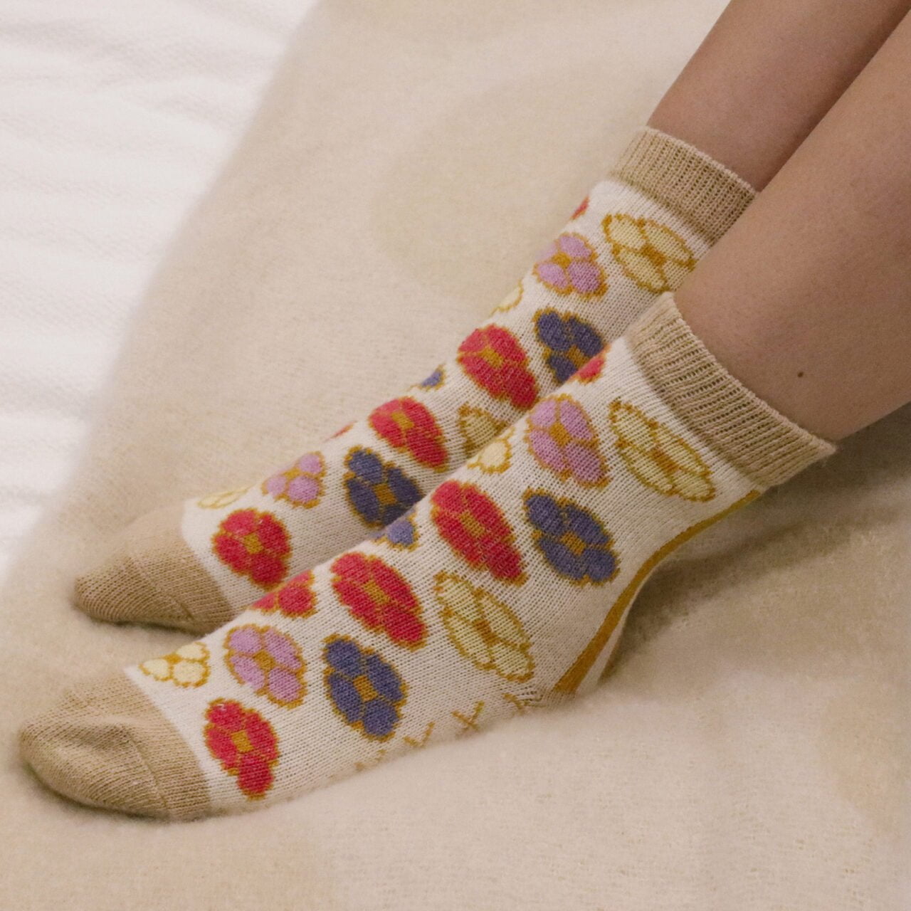 Stay cozy and stylish with our Camille socks set. Featuring three pairs of assorted floral knit socks, this set is perfect for adding a pop of color and pattern to your outfit while keeping your feet warm.