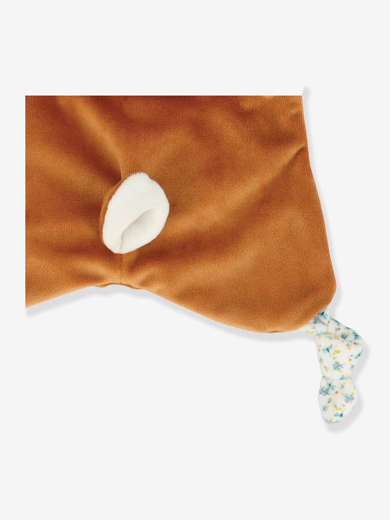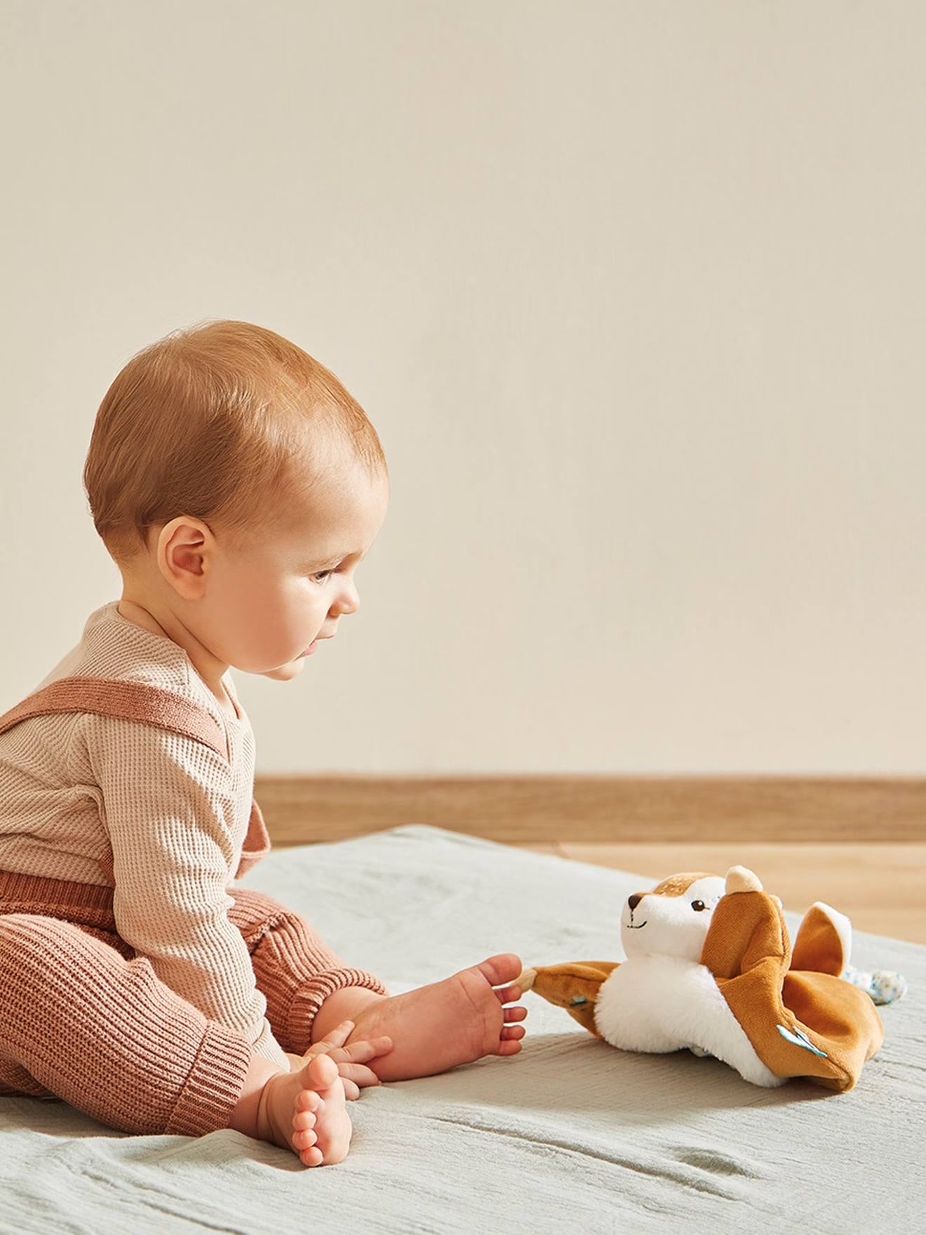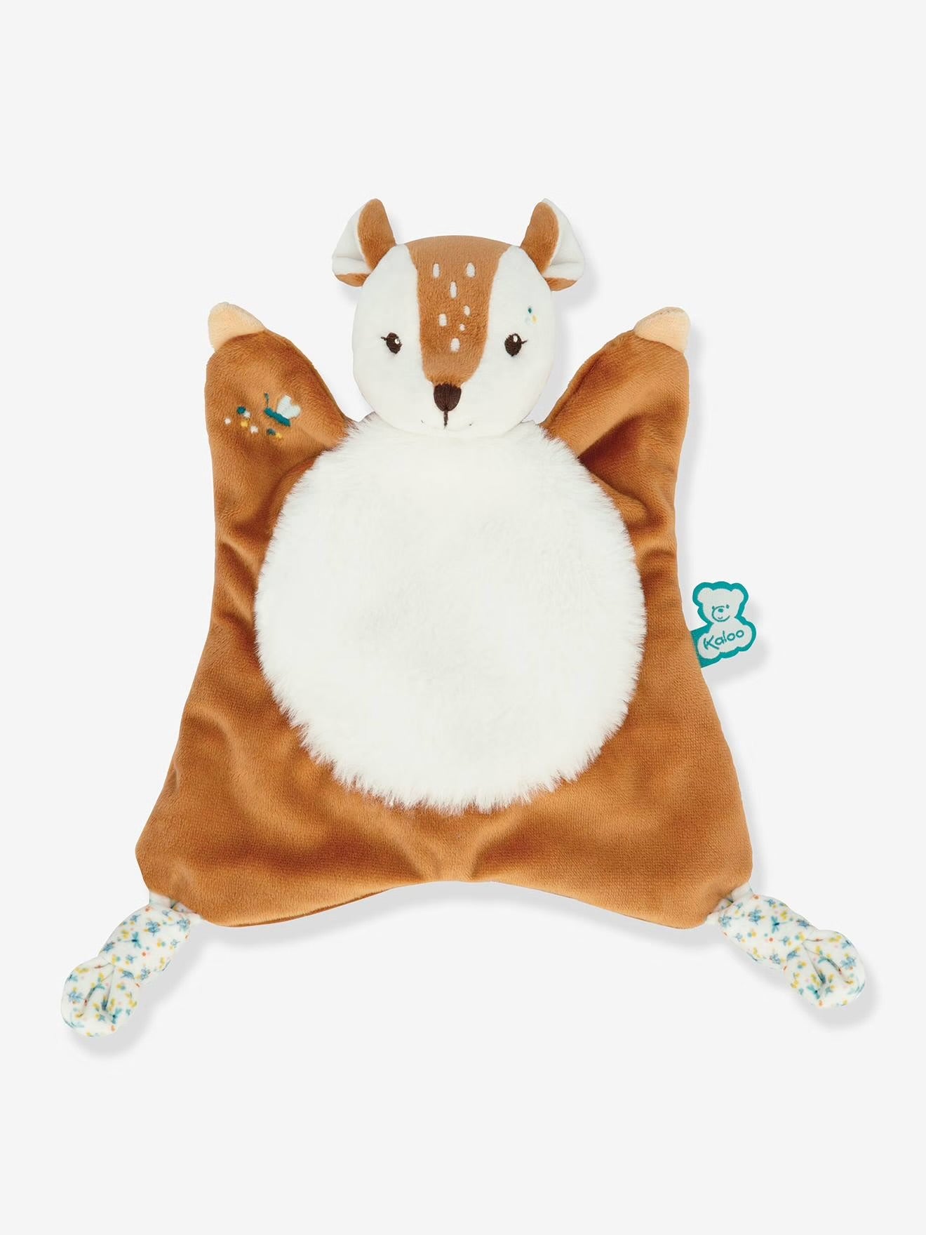 Nathan the fawn is a real rascal! This is the comforter that will amaze every moment of your child's life: with its bright colours and exquisitely soft fur, Nathan is much more than just a KALOO comforter - it's the perfect companion to comfort and cuddle your baby from birth. Nathan's delicate details give it a touch of magic: adorned with an enchanting floral pattern, dotted with mimosa buds and confetti at the ends, creating a captivating sensory experience for baby. With its cuddly tummy, cuddles can only be better! The long knots are perfect to attach a soother, and also offer stimulating gripping points for little hands. Naturally cute and curious, fawns are shy animals, but can also be mischievous! The Nathan comforter is eagerly waiting to bring tenderness and comfort to your baby.