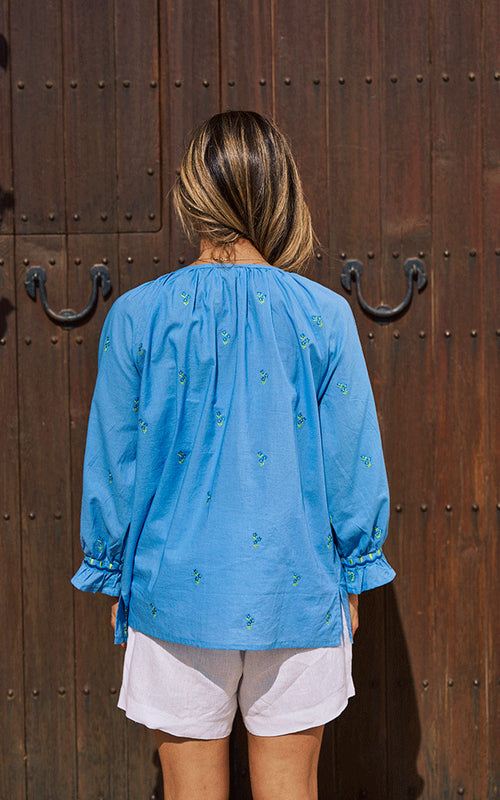 Beautifully refined, the Florento Cotton Top features intricate embroidered flowers in soft blue tones. A lightweight piece that adds subtle colour and feminine elegance to any look.One Size - Fits 10 to 14, Model Height 5ft 8'', (Chest 60cm & length 61cm). 100% Cotton