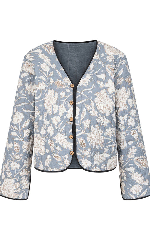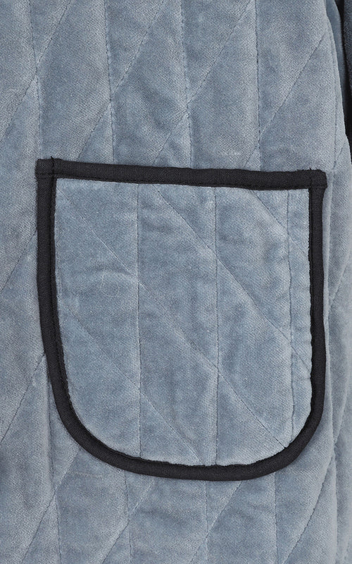 A versatile standout piece, this reversible quilted velvet jacket offers two looks in one—perfect for layering across seasons. Crafted in rich blue velvet, it features soft quilting for added texture and warmth, while the reverse reveals a beautifully detailed pattern inspired by traditional Indian textiles. Whether worn with the smooth velvet side out or flipped to showcase the intricate interior design, this jacket brings character and charm to any outfit. The thoughtful construction and subtle artistry make it a wardrobe piece you’ll reach for again and again. Finished with gentle padding, functional pockets, and a relaxed silhouette, it’s equal parts comfort and style—with a unique twist just waiting to