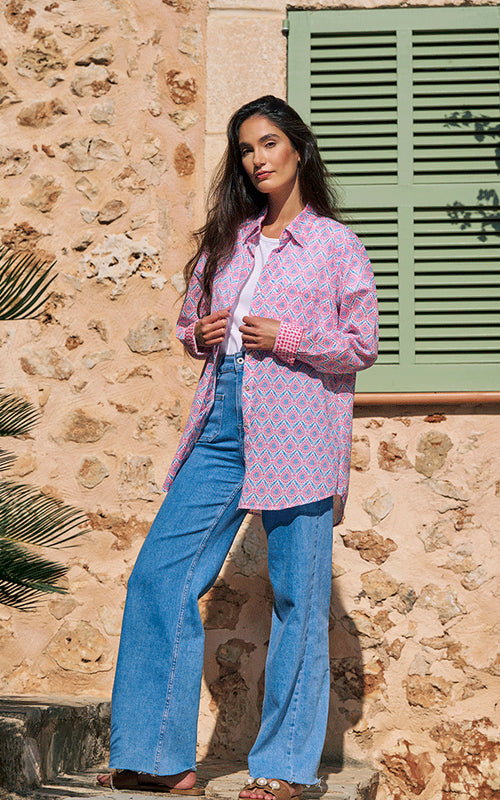 Designed with a relaxed boyfriend fit, the Montpellier Shirt is cut from whisper-soft 100% cotton voile. Available in our iconic pink and blue shades, it offers an easy balance of laid-back elegance and feminine charm.One Size - Fits 10 to 16, Model Height 5ft 8'', (Chest 60cm & length 78cm). 100% Cotton