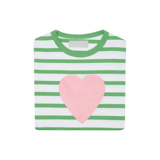 Bob & Blossom Grass Green & White Breton Stripped Love Heart T Shirt