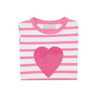Bob & Blossom Hot Pink & White Breton Stripped Love Heart T Shirt