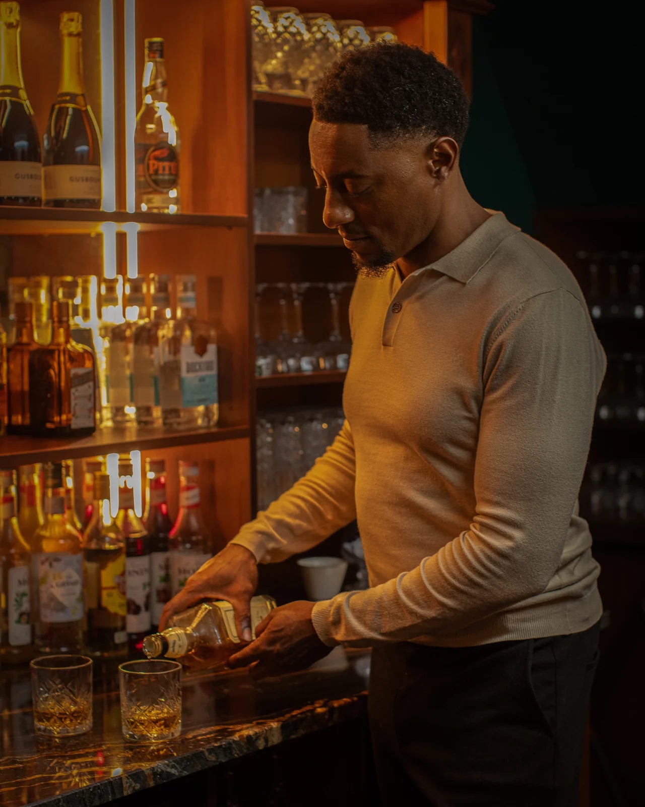 Lee has been knitted in a super soft, high quality mid-weight yarn and features a classic polo neck design and long full length sleeves. Finished with ribbed cuffed sleeves and waistband.
