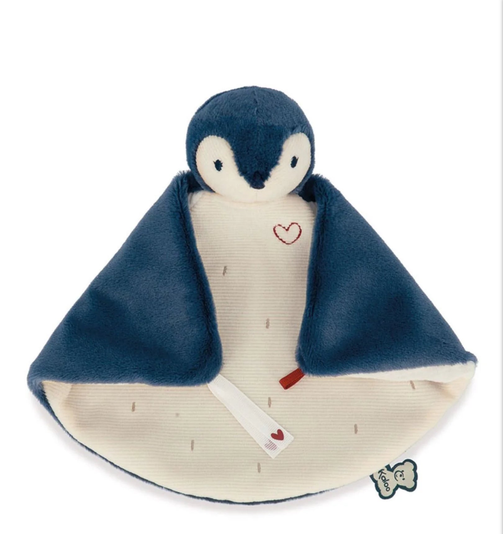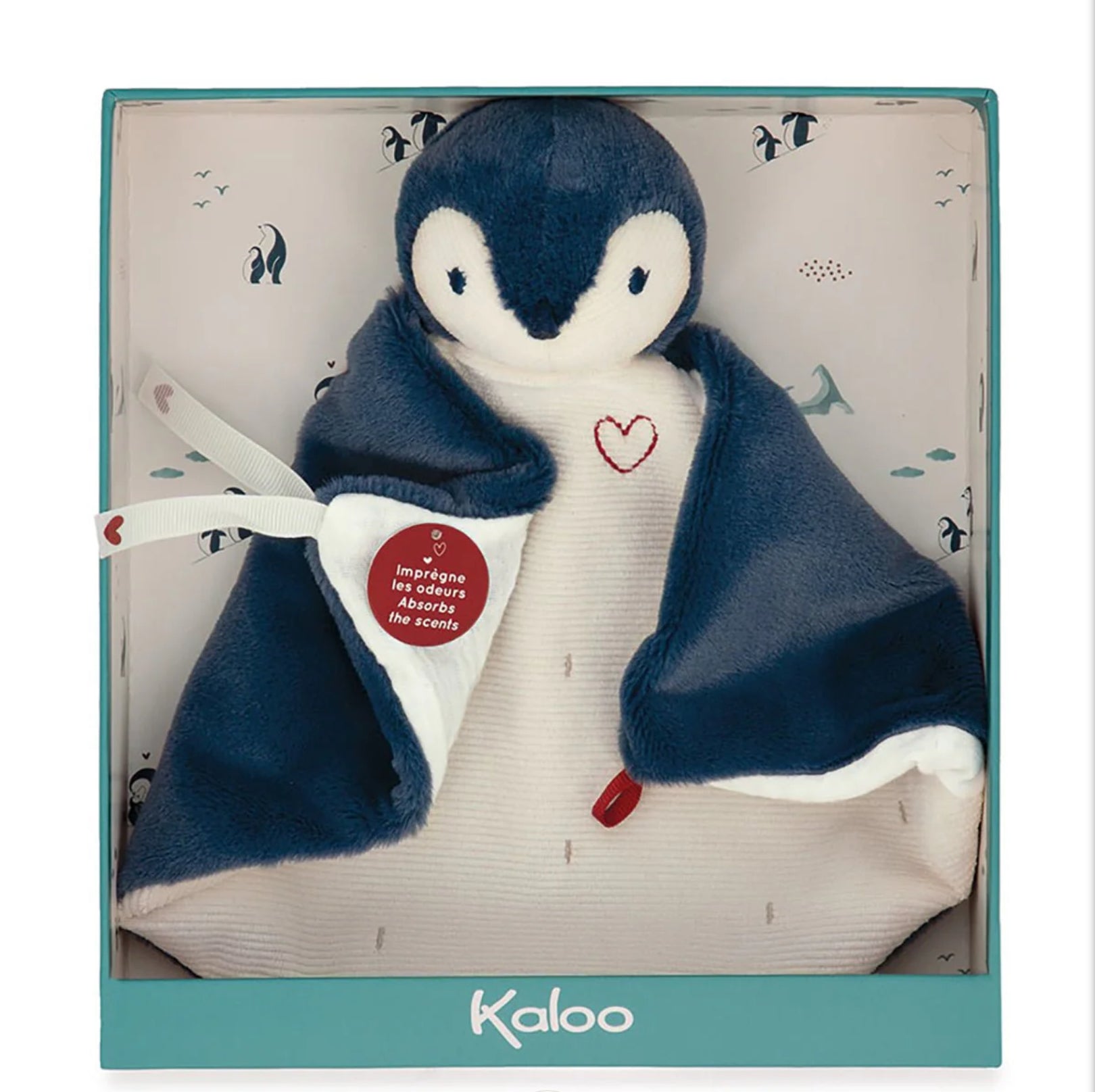 Adorable Soft Cuddly Doudou Penguin Blue. Kaloo toys are filled with eco-friendly stuffing made from 100% recycled plastic bottles setting it apart from other plush toys and making them ideal eco friendly gifts.