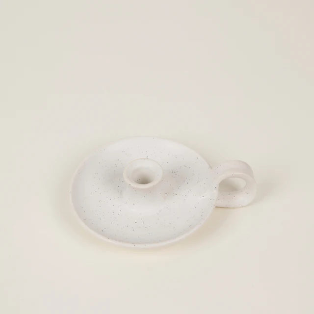 Charming and practical, our ½” White Speckle Candle Holder feels plucked from an artisan’s workshop. Its speckled finish and delicate handle evoke the rustic elegance of a bygone era, perfect for quiet evenings and intimate gatherings.